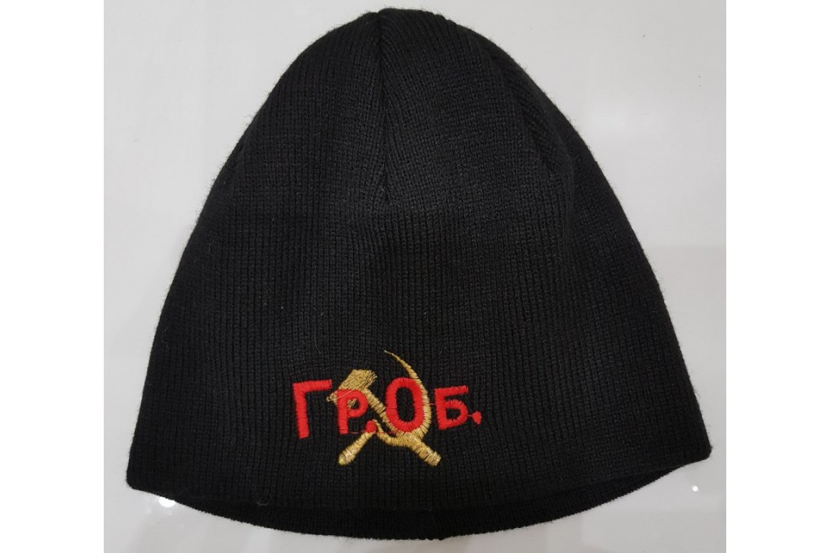Шапка вязаная с вышивкой 2 слоя Гражданская Оборона. Безразмерная