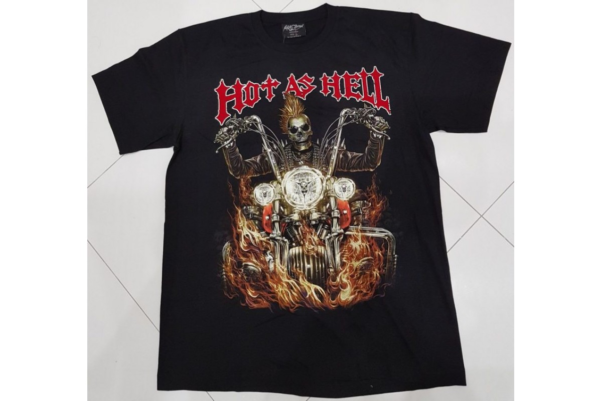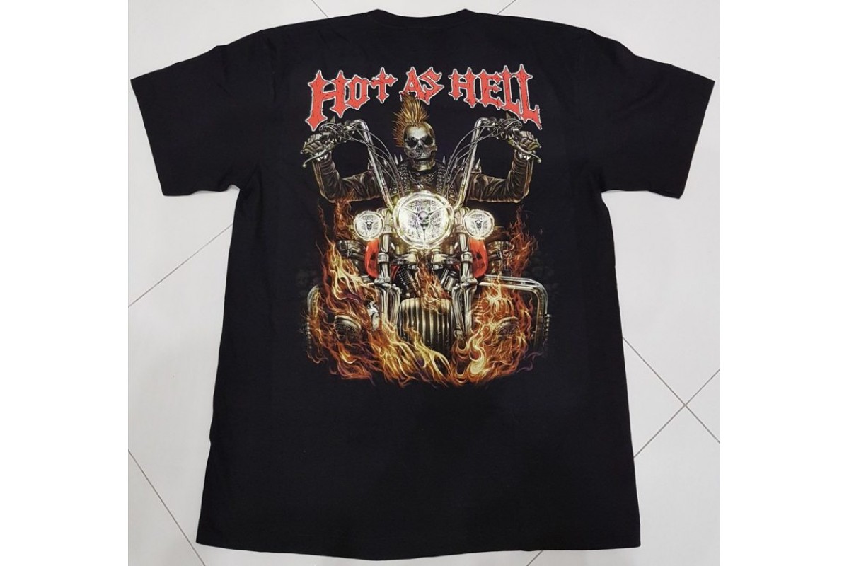 Hot as Hell.череп на мотоцикле. Клепаная светиться в темноте