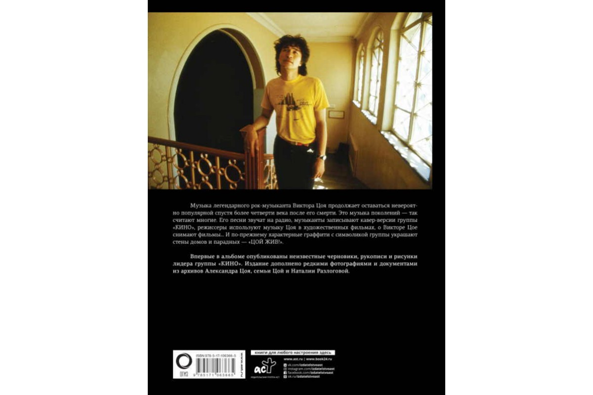 Музыка легендарного рок-музыканта Виктора Цоя продолжает оставаться невероятно популярной спустя более четверти века после его смерти. Это музыка поколений – так считают многие. Его песни звучат на радио, музыканты записывают кавер-версии группы "КИНО", режиссеры используют музыку Цоя в художественных фильмах, о Викторе Цое снимают фильмы… И по-прежнему характерные граффити с символикой группы украшают стены домов и парадных – "ЦОЙ ЖИВ!". Впервые в альбоме опубликованы неизвестные черновики, рукописи и рисунки лидера группы "КИНО". Издание дополнено редкими фотографиями и документами из архивов Александра Цоя, семьи Цой и Наталии Разлоговой.