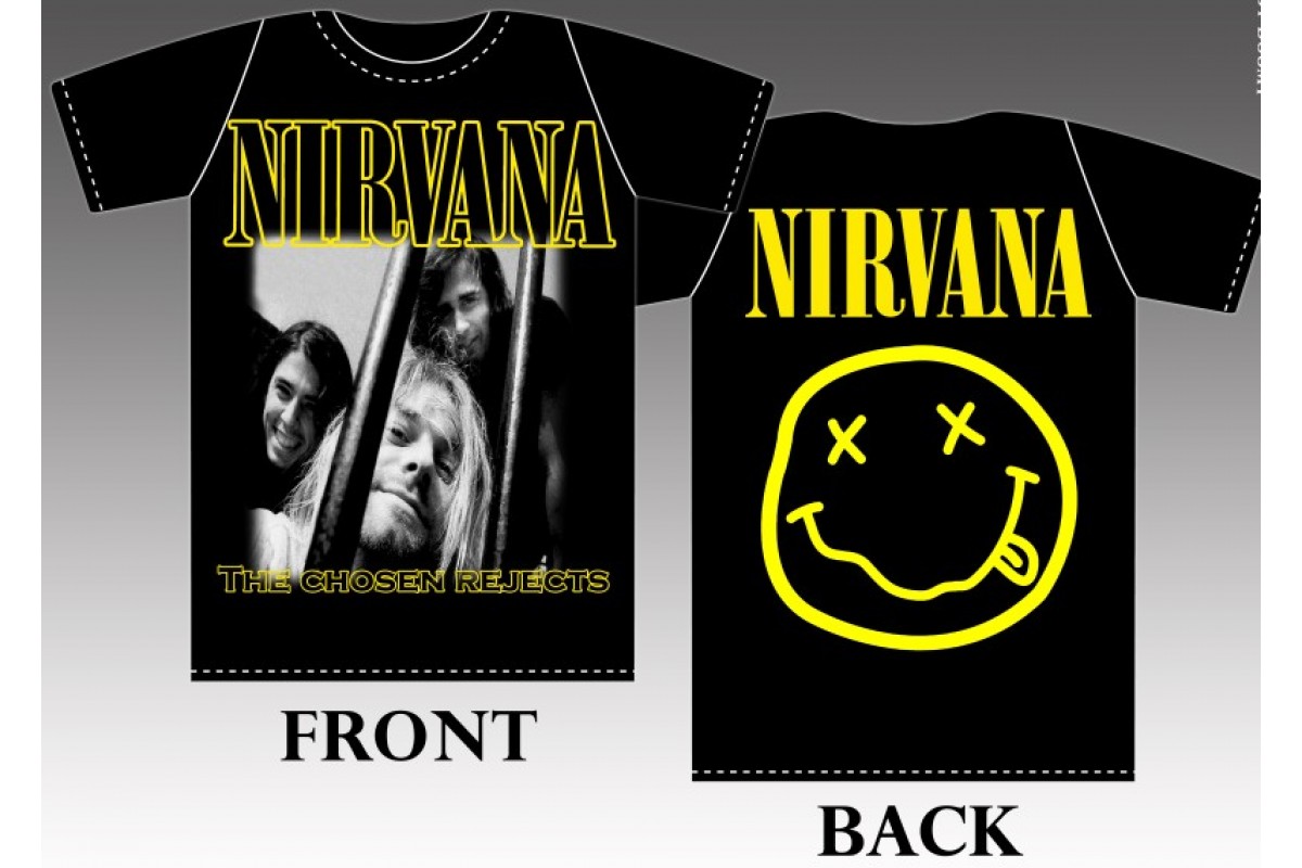 Nirvana черно белый рисунок. Нанесение шелкография .размер 30-33см на 39-41см..
