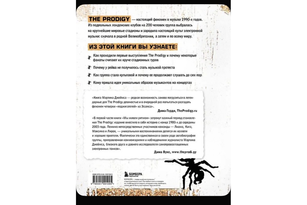 Эту книгу написал друг музыкантов Мартин Джеймс. Вместе с The Prodigy он прошел длинный путь, и теперь может рассказать о том, как росла популярность коллектива и как группа стала культовой.