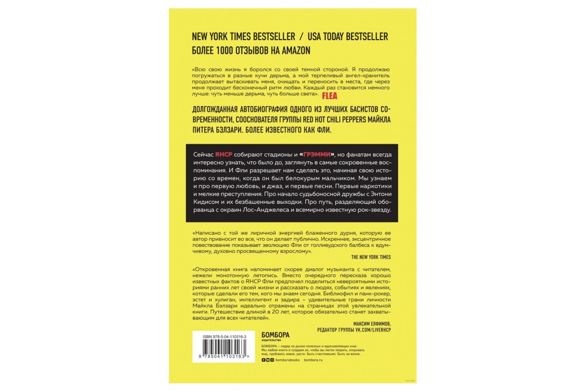 Все мы знаем эту историю и уж точно слышали знаменитую Californication. В этой же книге один из лучших басистов современности рассказывает о том, что было до и что осталось за кадром: переезд в США, развод родителей и сложные отношения в семье, первая любовь, первые песни, первые наркотики. Сумасшедшие поступки, джаз, фанк, прыжки в бассейн с крыши многоэтажек, кражи, знакомство с Энтони Кидсом, школьная дружба с которым перерастёт в создание RHCP. Это путь с грязных улиц Лос-Анджелеса к вершинам музыкальных чартов и армии поклонников по всему миру.