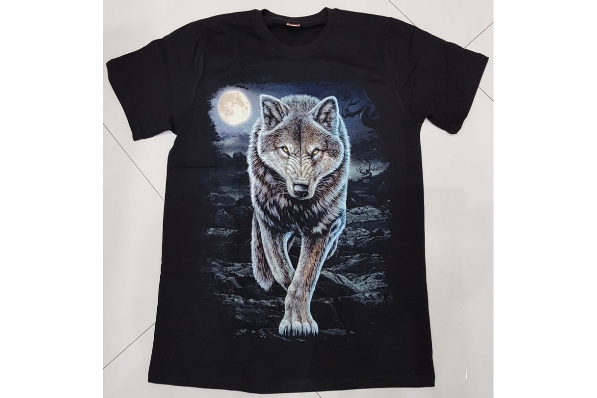 Волк идет сзади луна