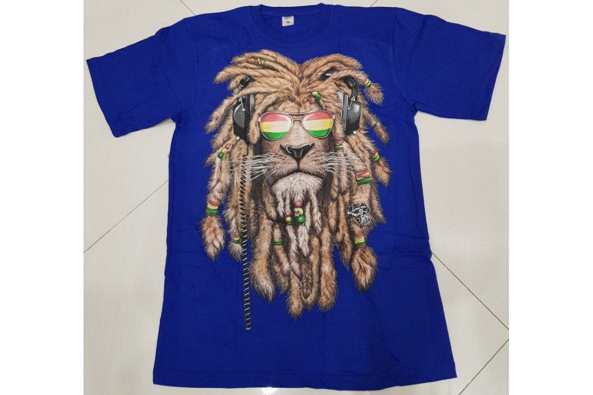 Лев в наушниках и с дедрами.Синяя