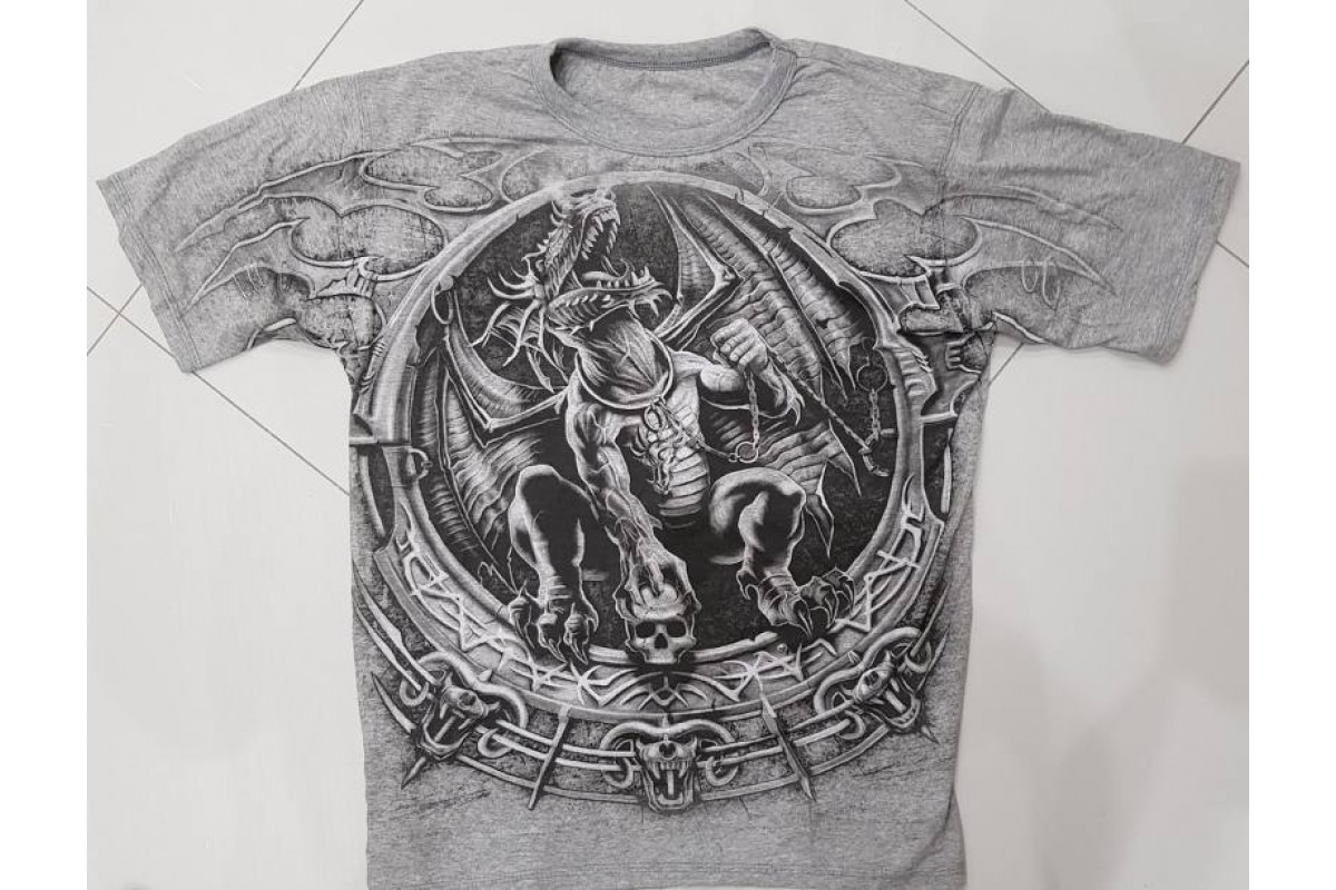 Дракон на цепи держит череп ( серая)