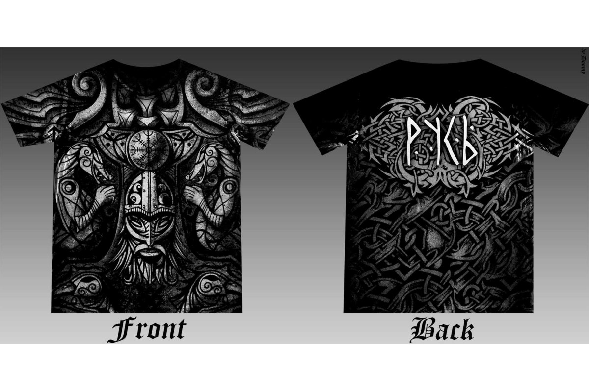 Русич замахиваеся топором , в руке копье ..